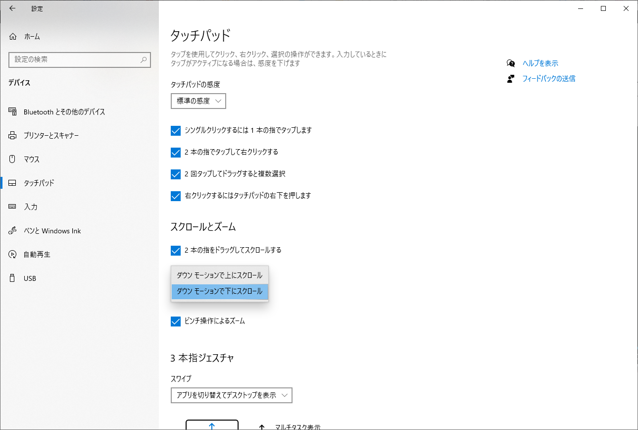 2本指で下に滑らせたら、上から下へ。・・・が、我が標準。